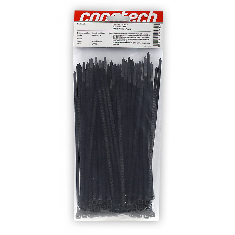 Opaski zaciskowe w kolorze czarnym, odporne na destrukcyjne działanie promieniowania UV, wysokiej temperatury, erozji i kwasów. Mocny mechanizm zapadkowy w głowicy oraz profil zębatkowy, na całej długości taśmy, trwale utrzymują zaciśniętą pętlę. Przystosowane do montażu ręcznego lub za pomocą narzędzi.
