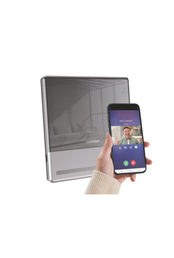 Monitor posiada wbudowaną kartę WiFi umożliwiającą przekazanie połączenia do urządzenia mobilnego (np. smartfona) wyposażonego w system Android lub iOS. Darmowa aplikacja COMMAX Hey Call pozwala na odbieranie połączeń, rozmowę audio/wideo i otwarcie wejścia. Użytkownik nie musi w tym czasie znajdować się w domu - wystarczy, że posiada jakiekolwiek połączenie z internetem (inne WiFi, LTE), system przekieruje połączenie wykorzystując sieć internetową. W każdym momencie można również wywołać obraz z dowolnej kamery podłączonej do monitora oraz zwolnić wejście.