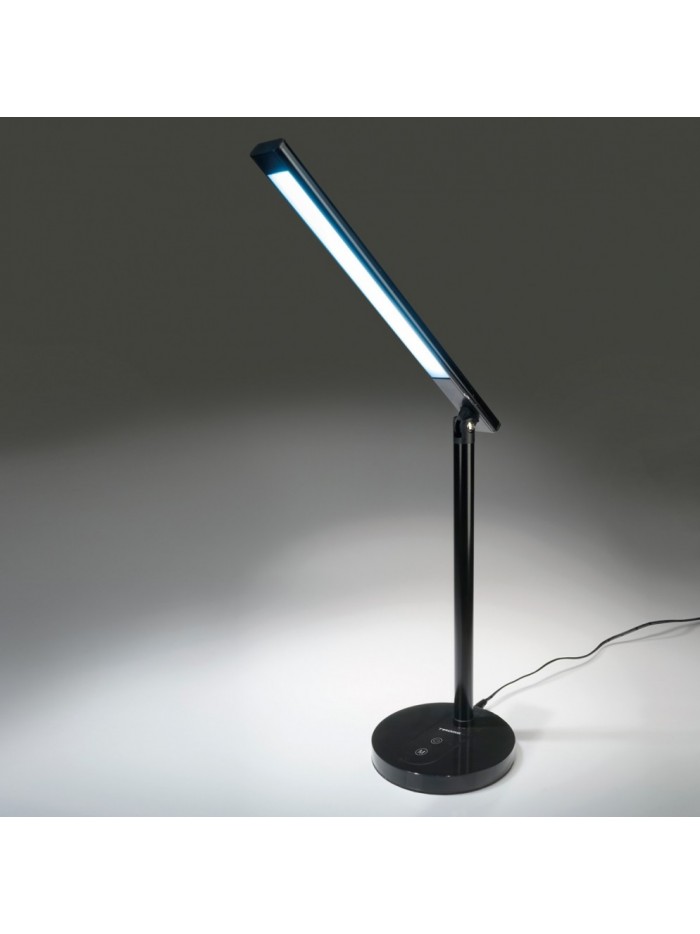 Lampka LED o kompaktowej składanej budowie umożliwiającej łatwe transportowanie lampki. Wyposażona w 32 żarówki LED o żywotności 25 000 godzin, zapewnia komfortowe oświetlanie biurka w 3 tonach: od ciepłego sprzyjającego relaksowi 3000 K, przez neutralne światło 4000 K, aż po zimne, doskonałe do pracy umysłowej lub manualnej – 6000 K. Intuicyjny panel dotykowy umożliwia komfortowe balansowanie pomiędzy barwą światła, ułatwiając dostosowanie oświetlenia do aktualnego nastroju. Dostępny w dwóch klasycznych kolorach – srebrnym oraz czarnym – doskonale zaakcentuje styl każdego biura.