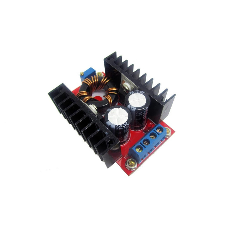 Przetwornica podwyższa napięcie wejściowe z zakresu 10V - 32V do napięcia wyjściowego regulowanego za pomocą potencjometru z zakresu 12V - 35V.