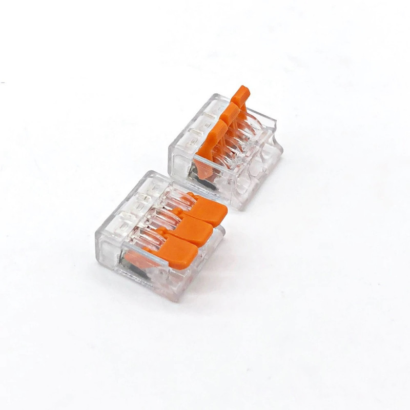 Złączka elektryczna typu "413" umożliwia połączenie przewodów elektrycznych w łatwy i pewny sposób bez użycia jakichkolwiek narzędzi. Wystarczy odchylić dźwignię, włożyć przewód a następnie zatrzasnąć dźwignię. Kostka umożliwia połączenie 3 przewodów.
