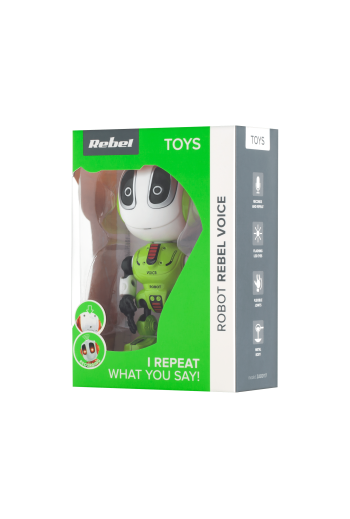 Podaruj swojemu dziecku nowego przyjaciela! Rebel Voice to robot zabawka, która zapewnia kreatywną zabawę! Ta interaktywna zabawka potrafi słuchać, a następnie powtarza, to co usłyszy, śmiesznie zniekształcając głos. Dzięki temu doskonale rozwija wyobraźnię, a Twoje dziecko pokocha go od pierwszego słowa.